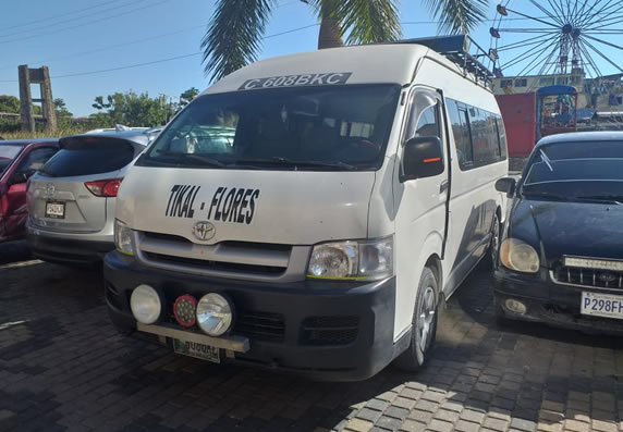 This is a Shared Minivan for 15 passenges, from Palenque to Flores Peten, this shuttle will have one bus change by the borders, book online tickets.